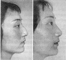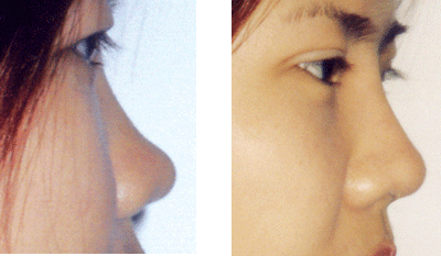 从正面看,鼻子加高就不会觉得脸部的中央凹陷下去而且有阴影;鼻梁稍高会使眼框看起来较深邃,进而加深眼睛的亮度;鼻头也因为加高而不再有朝天鼻的情形。由侧面看,加长脸部侧面的纵深,使由下巴-下唇-鼻尖的连线呈现一直线(这在颜面外观上被认为是好看),脸型就会变得好看。
